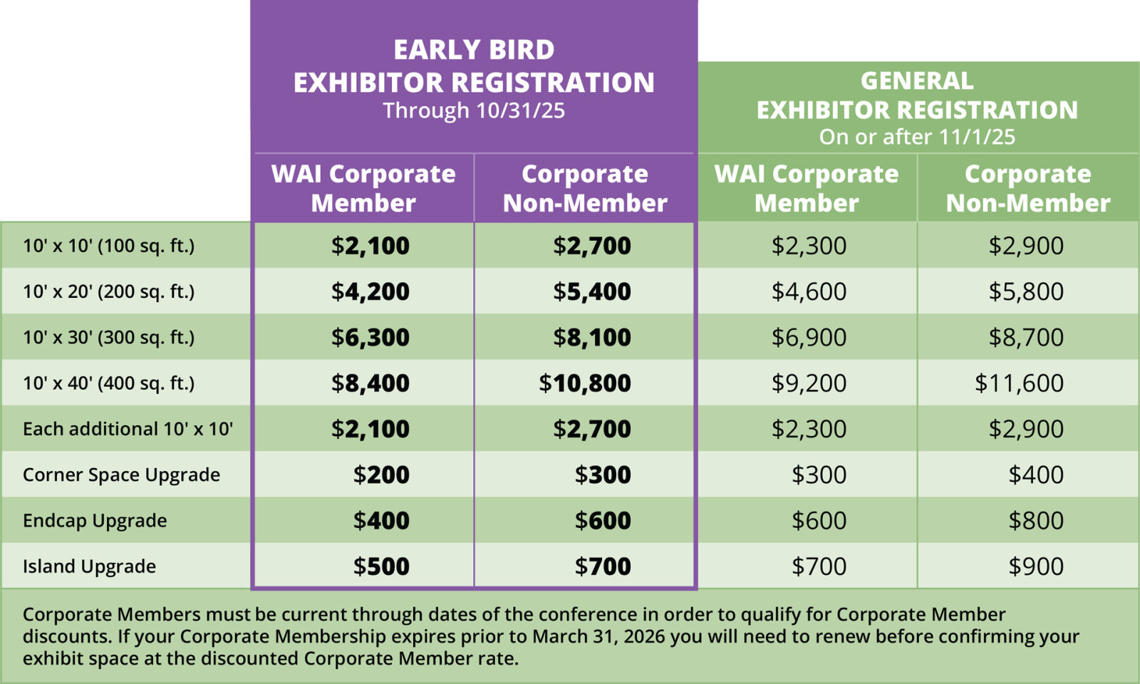 Every person entering the exhibit hall will be required to wear a WAI Conference badge at all times.